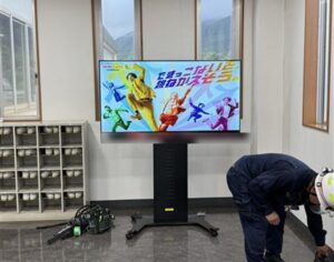 エスツーアイで取り扱っているデジタルサイネージシステムの構築のためLAN配線・モニタの設置をしていきます。